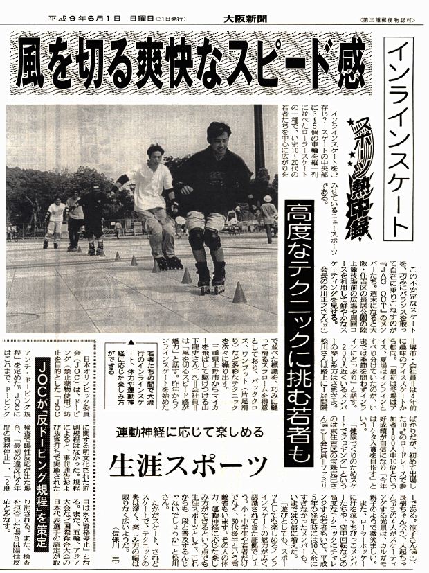 長居のインラインの紹介が大阪新聞(1997年6月1日付)に掲載されました