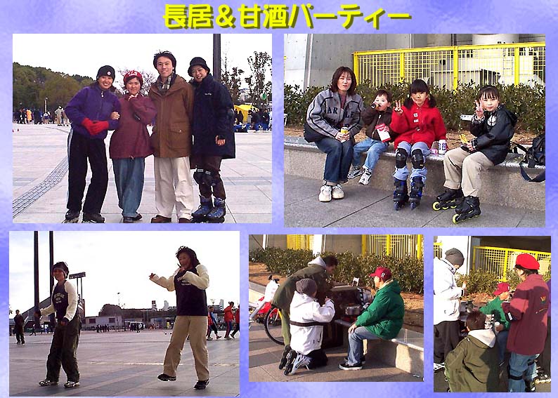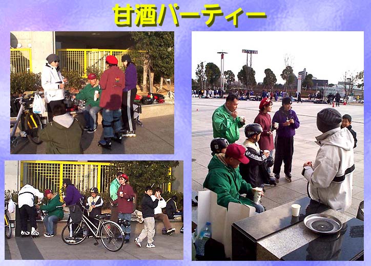 長居公園の競技場前での甘酒パーティーです(99.1.16)