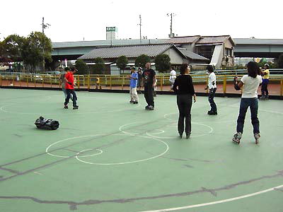![]() 「伊丹市立ローラースケート場」はバンクのついた外周と、初心者用の中央リンクがあります。路面は快適\(^o^)/!! |