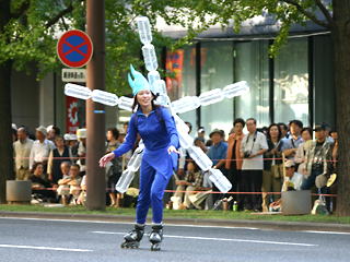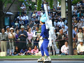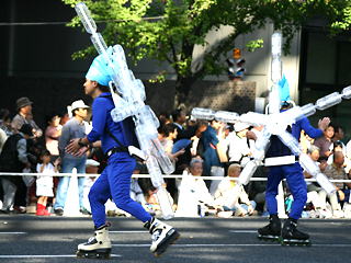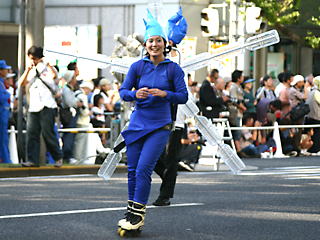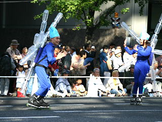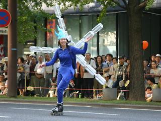 台風一過、快晴の中行われた御堂筋パレードのサントリーフロートにインラインスケーターが参加しました(^o^)/
